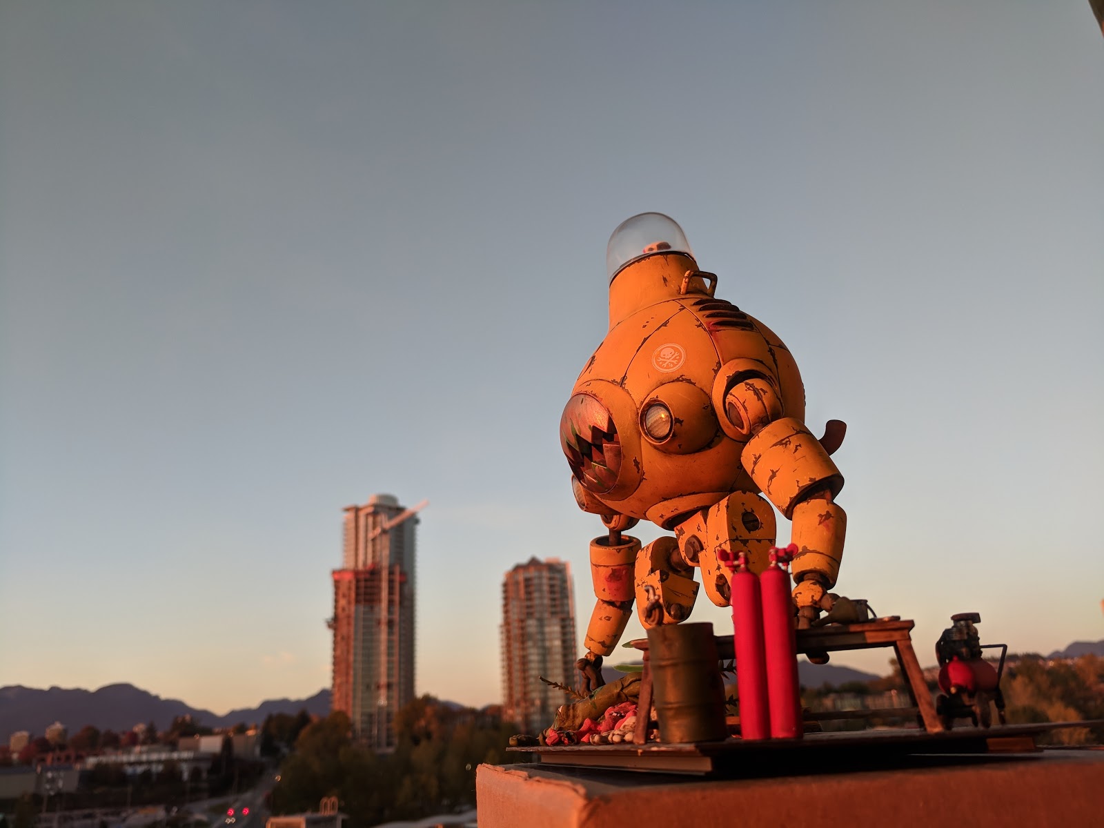 I'm happy with how the Chompbot turned out - it's a really fun model. The next phase of its life will be to decorate my desk at work, and to menace the vegetables I bring for my lunch.
